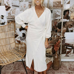 - Long sleeve sweater knit wrap dress