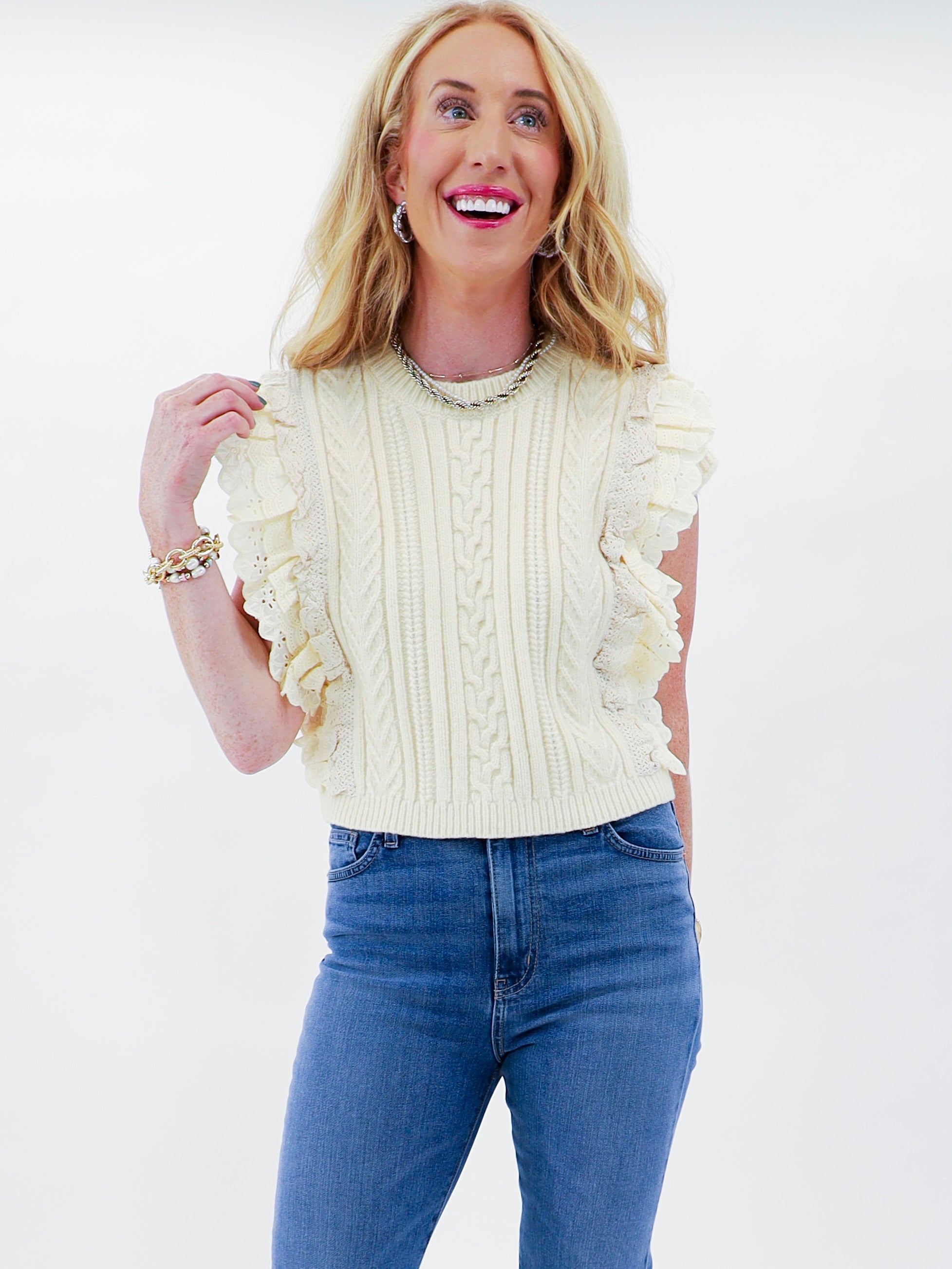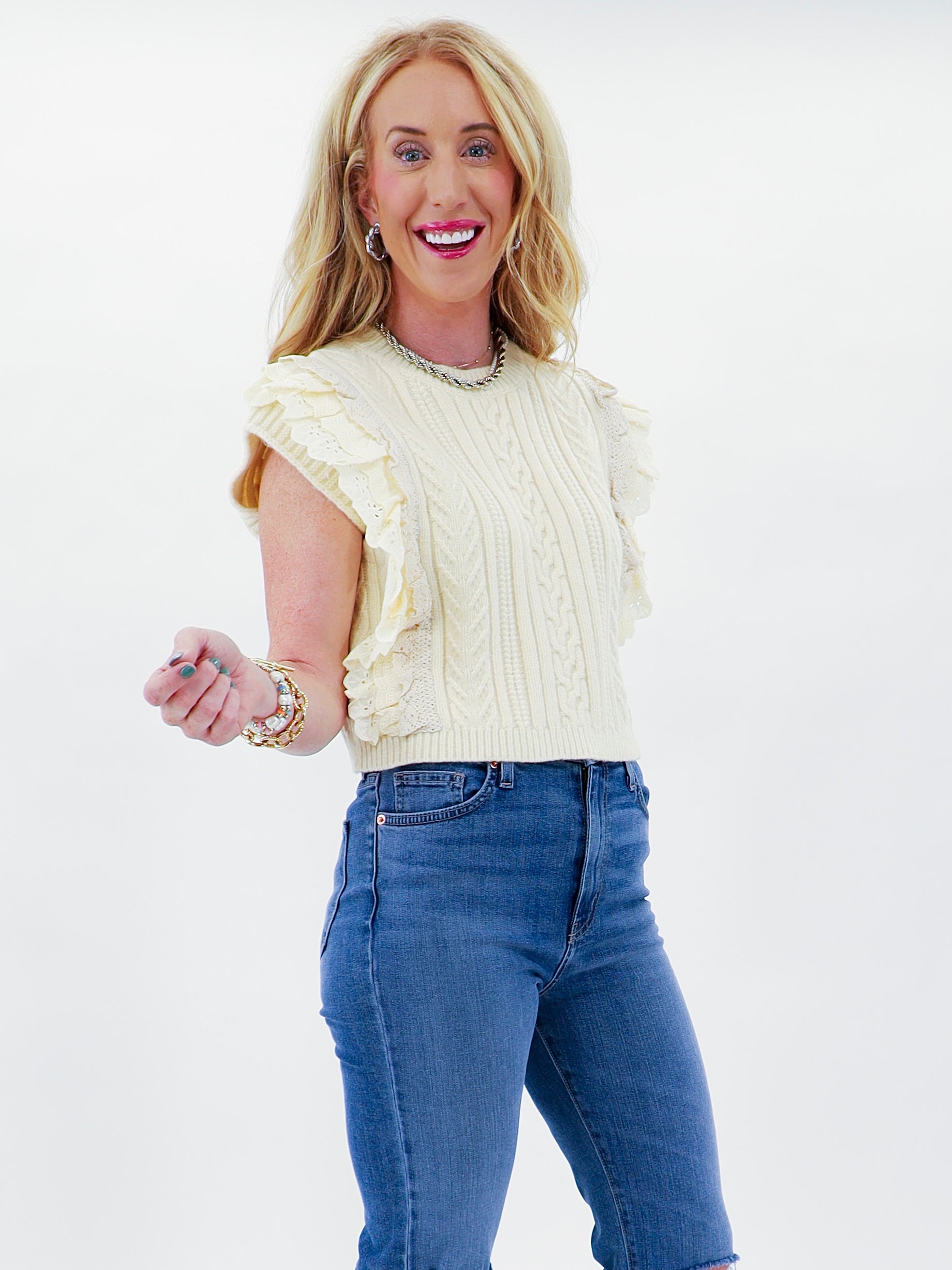 Get ready to take you fall style up a notch. This Dainty Detail Sweater Vest is delicate and has a touch of sweetness for your everyday look.