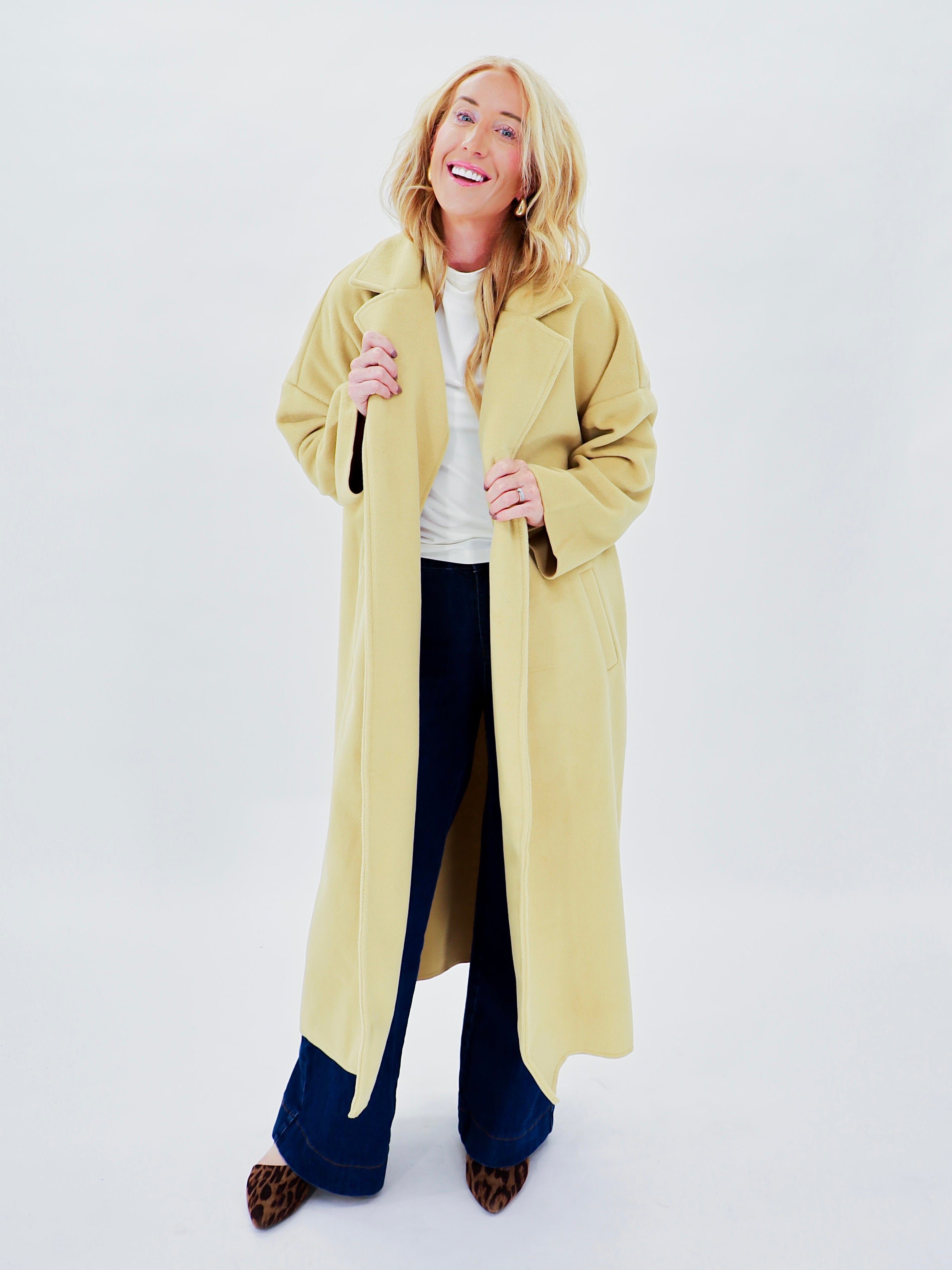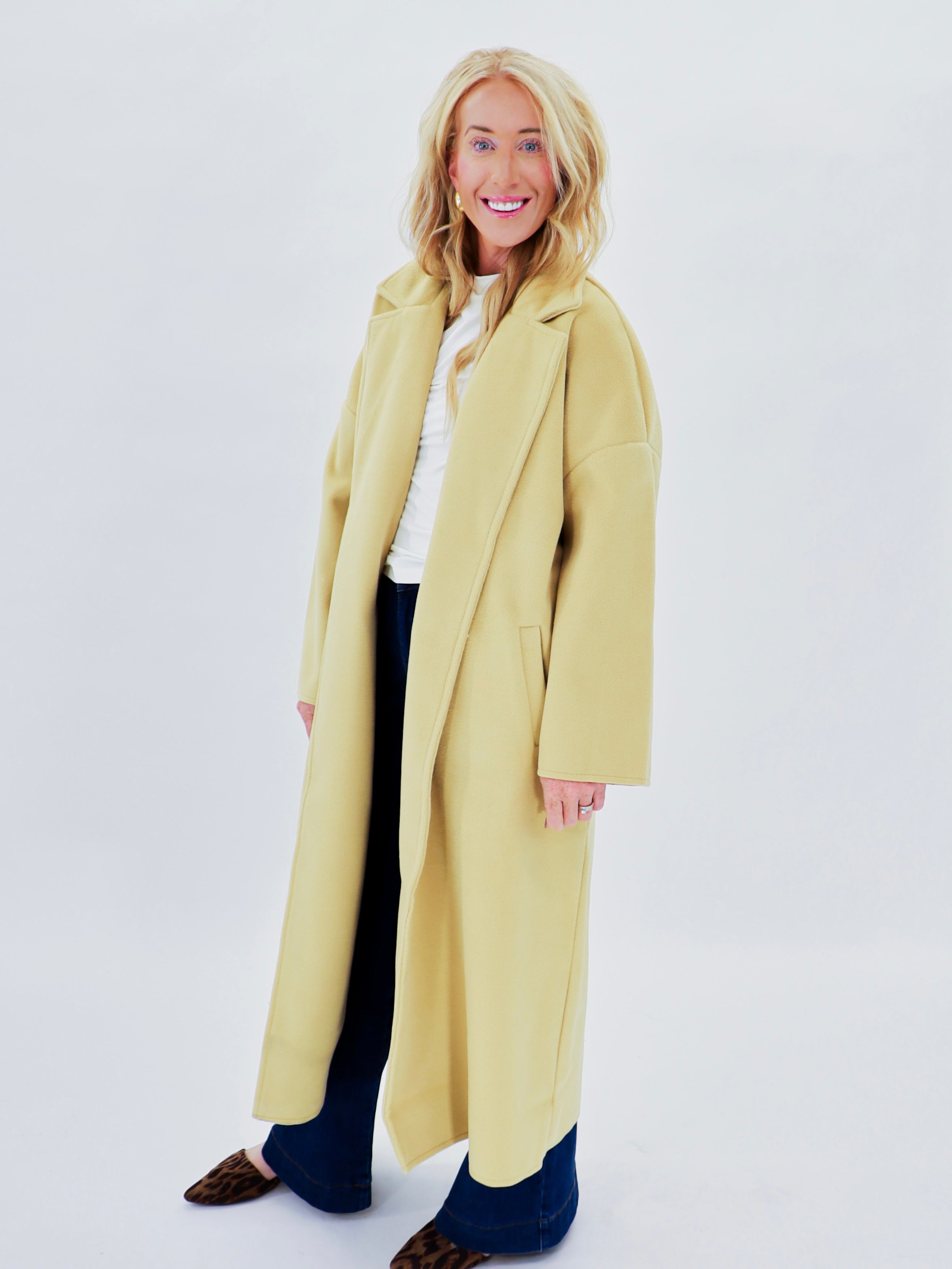 A must-have for customers, we've brought back this breathtaking golden coat that was a hit last year. Whether you're dressing up for holiday parties or keeping it casual while running errands, stay warm and fashionable in this versatile piece