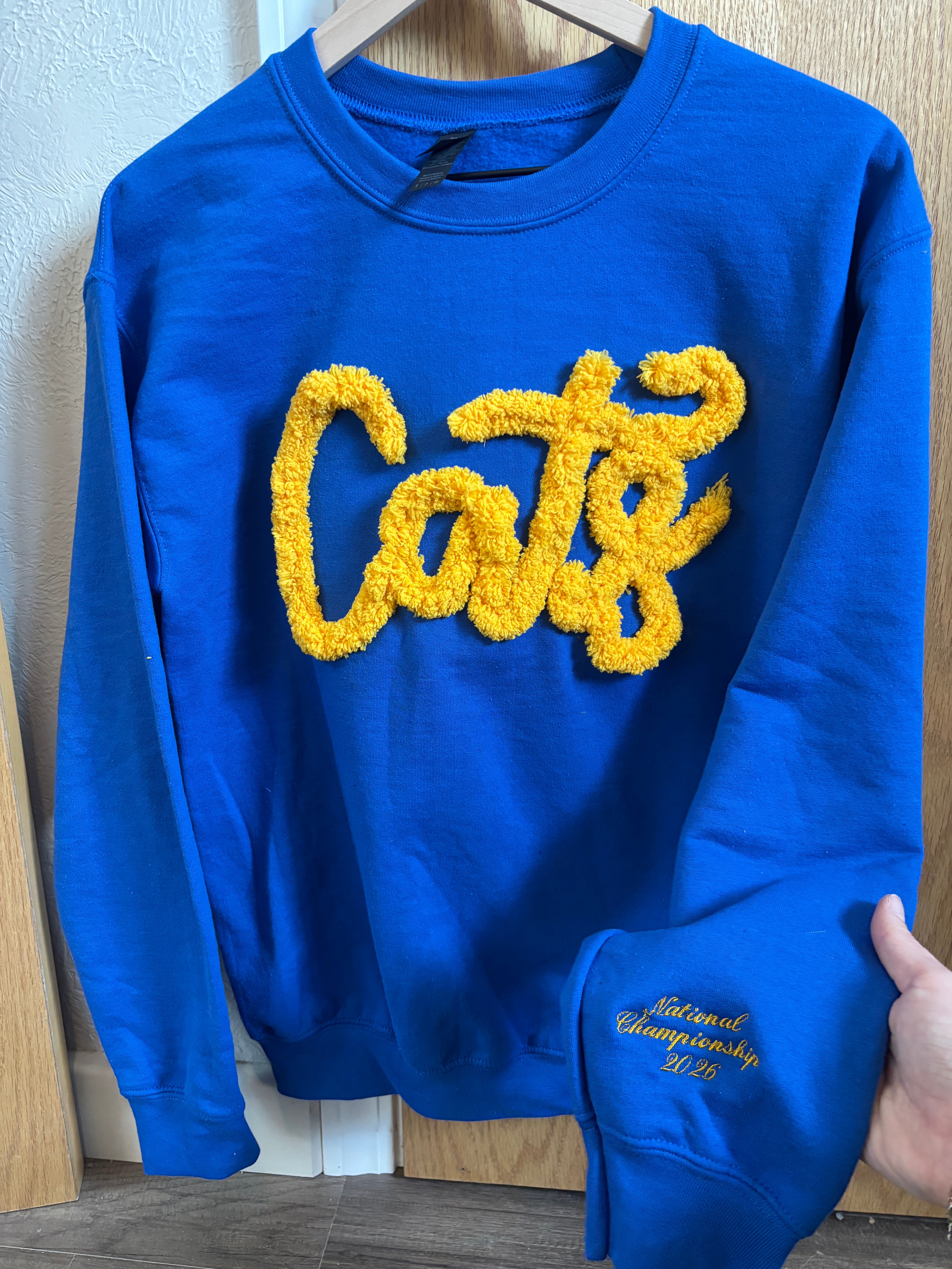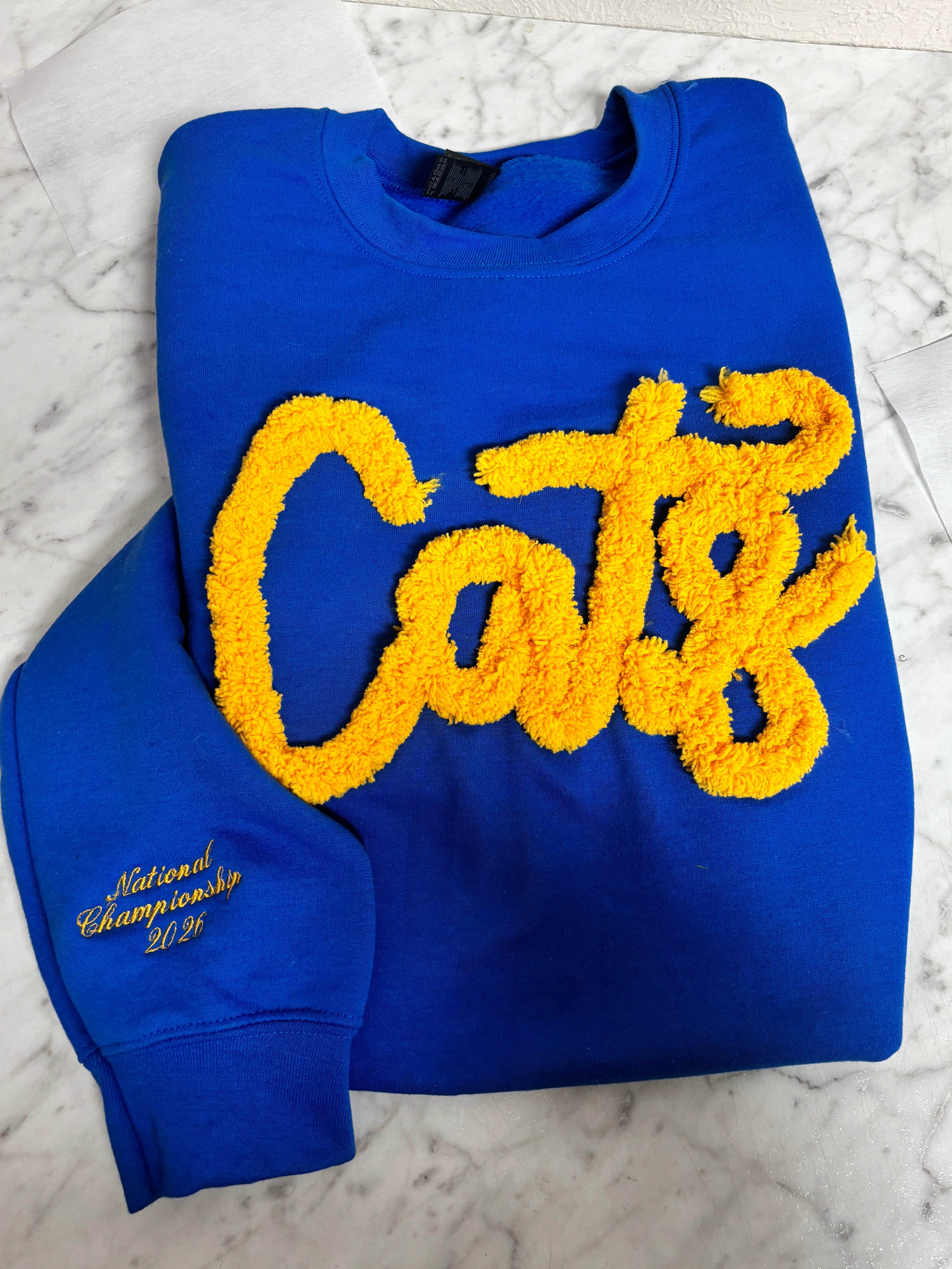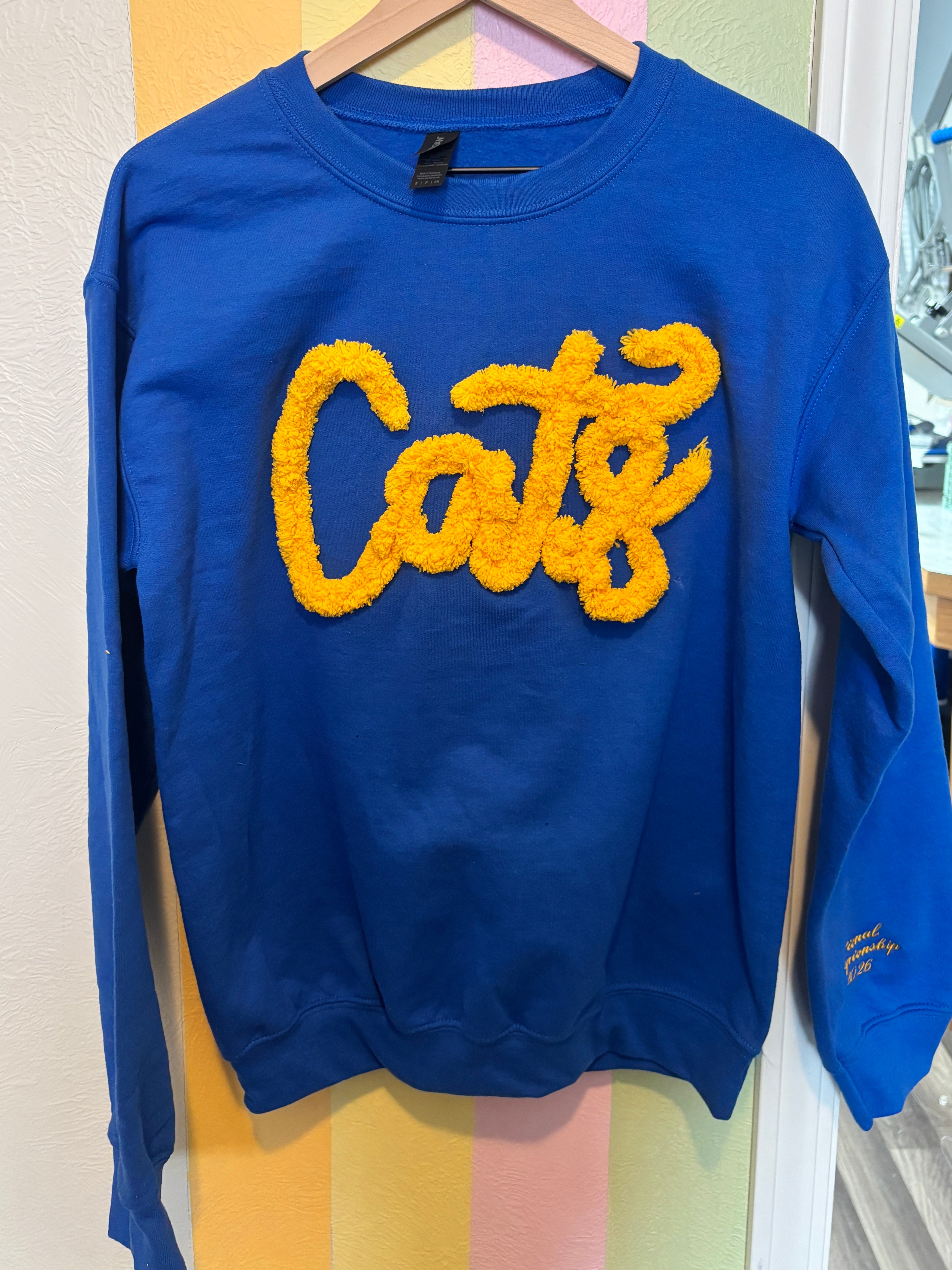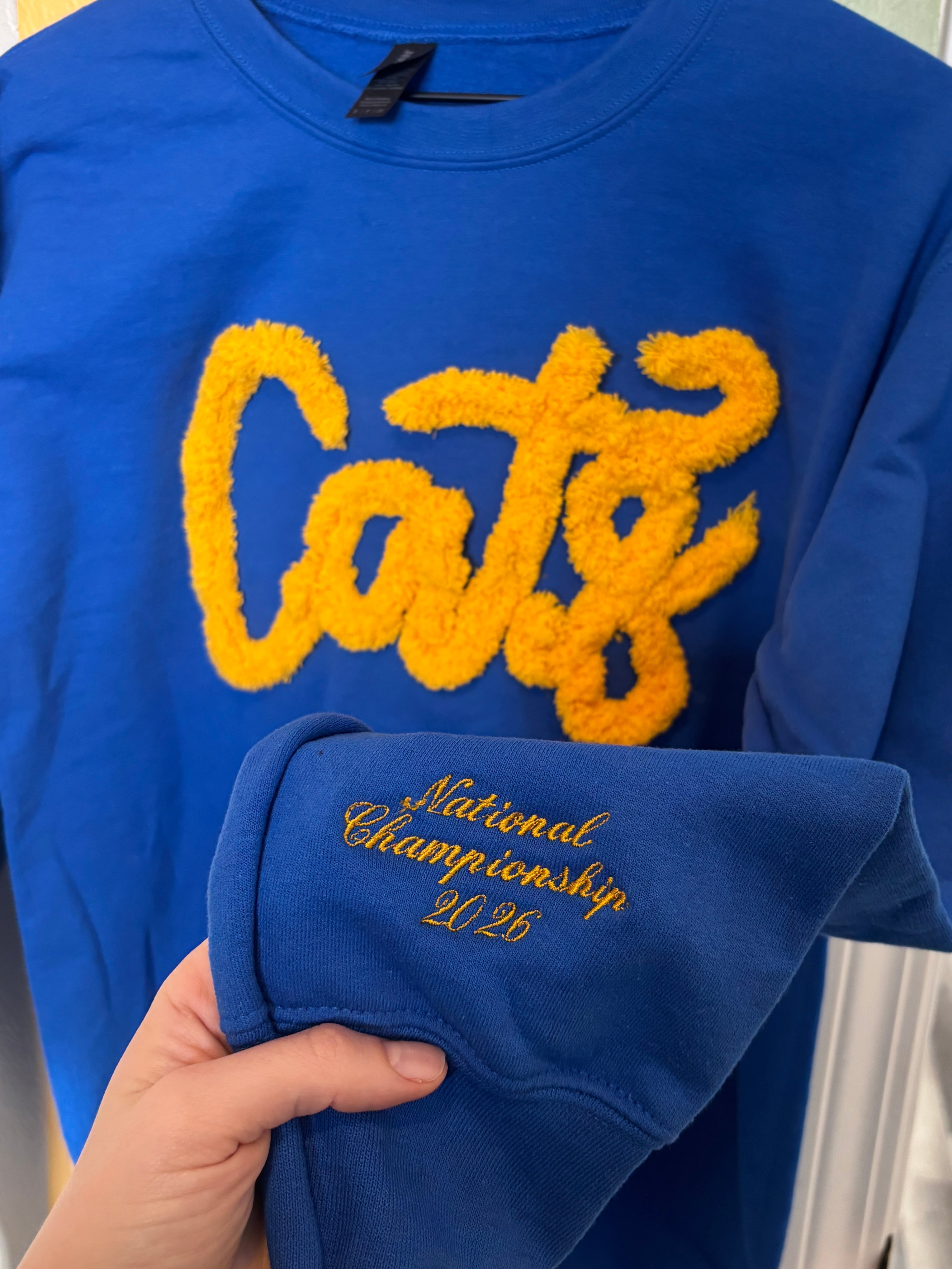 This Go Cats Go crewneck was designed by us, for you, made by a local Montana artist—you won’t find this crewneck anywhere else. We have a super limited number of sweaters, so once they are gone, they are gone! The Bobcats haven’t won a National Championship since 1984 (with titles in 1956, 1976, and 1984)—and we’re calling it now: this is our year.