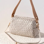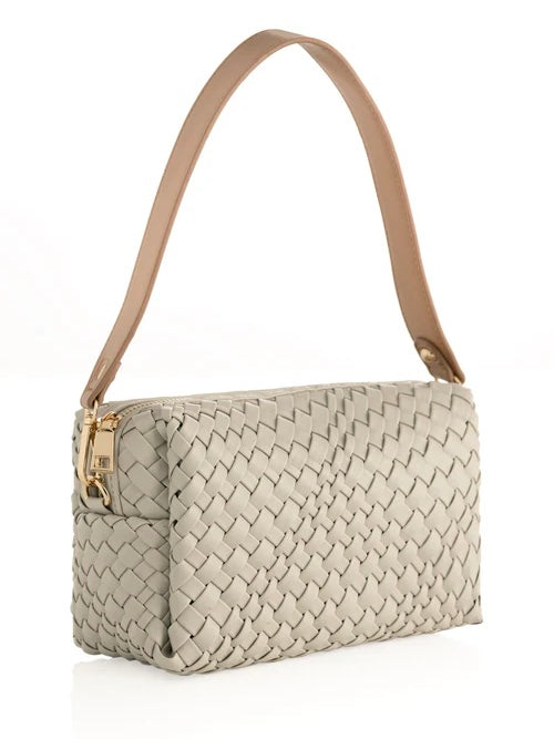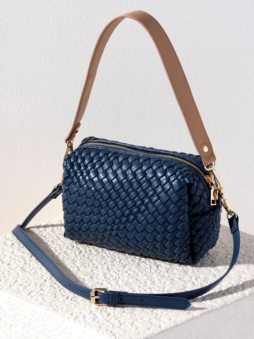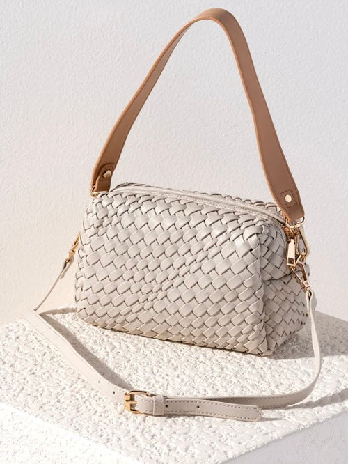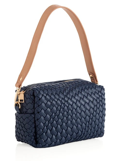 - Made from woven smooth pu with gold hardware