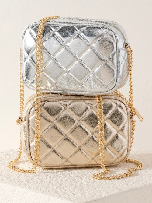 Introducing your new go-to handbag, with a cool crossbody chain and a vibrant quilted finish to make you the center of attention!