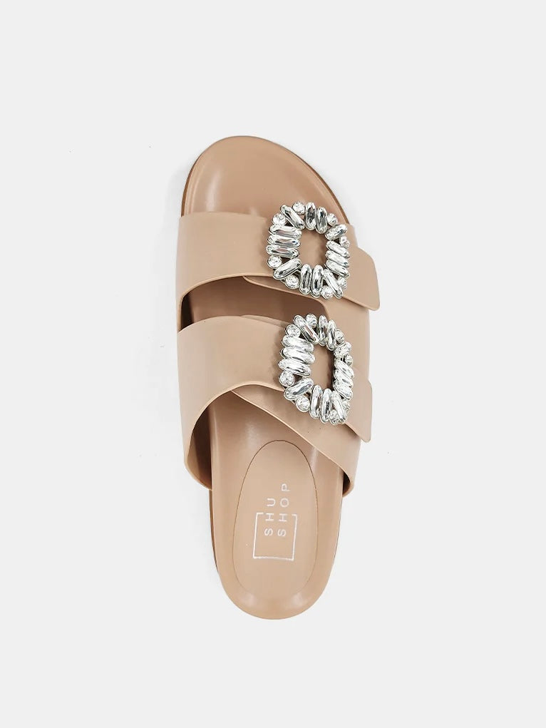 Our Bridget Sandal is the perfect tone of champagne and she is dreamy. This sandal has the best sparkle detail, they are the perfect neutral tone and did we mention comfy?!