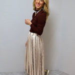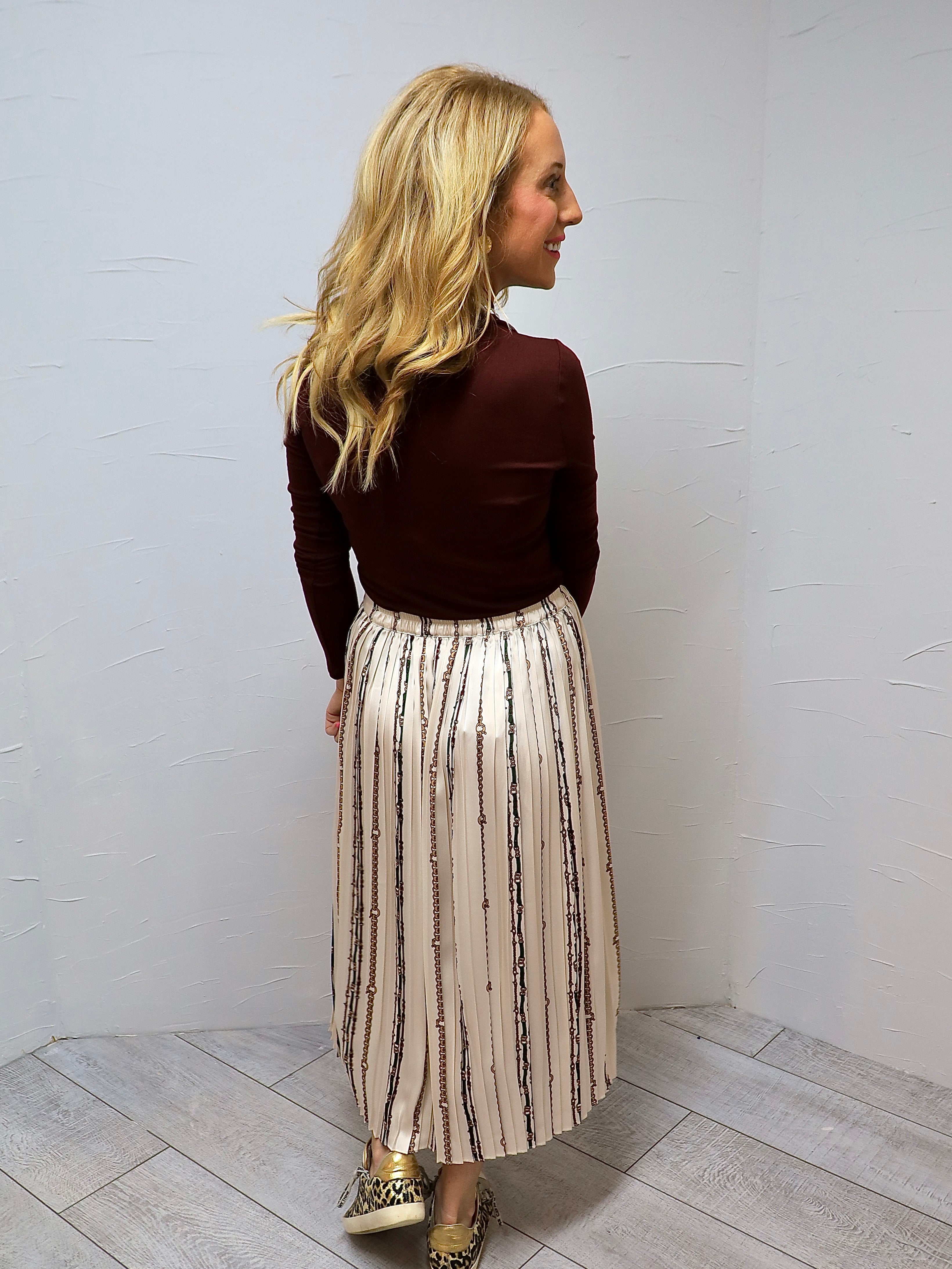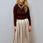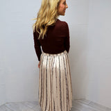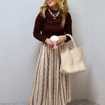 Hey babe, this gucci-inspired skirt is the ultimate choice for rocking spring vibes! Pair it with cowgirl boots or heels for a chic office outfit, or keep it casual with some fresh kicks for an effortless look.