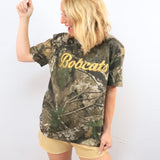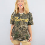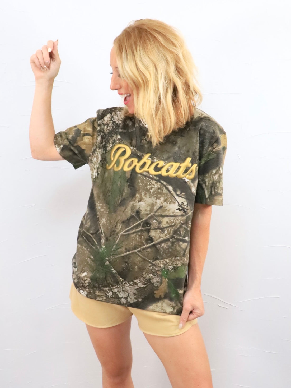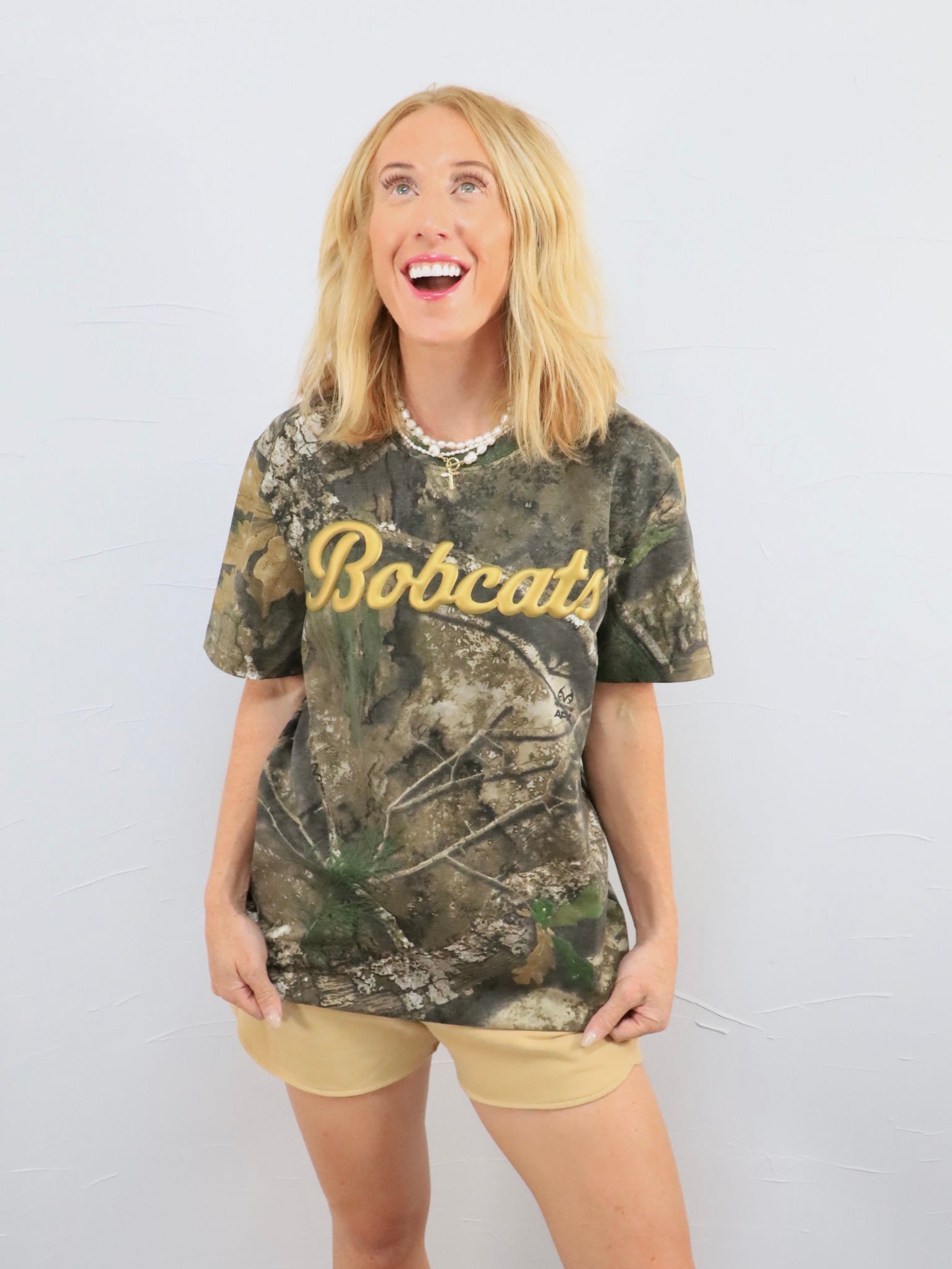 This camo T-shirt with gold detailing is perfect for game day, or any day for that matter. Whether you're cheering on your team or just looking for a stylish yet comfortable option, this Bobcat tee is the one for you!