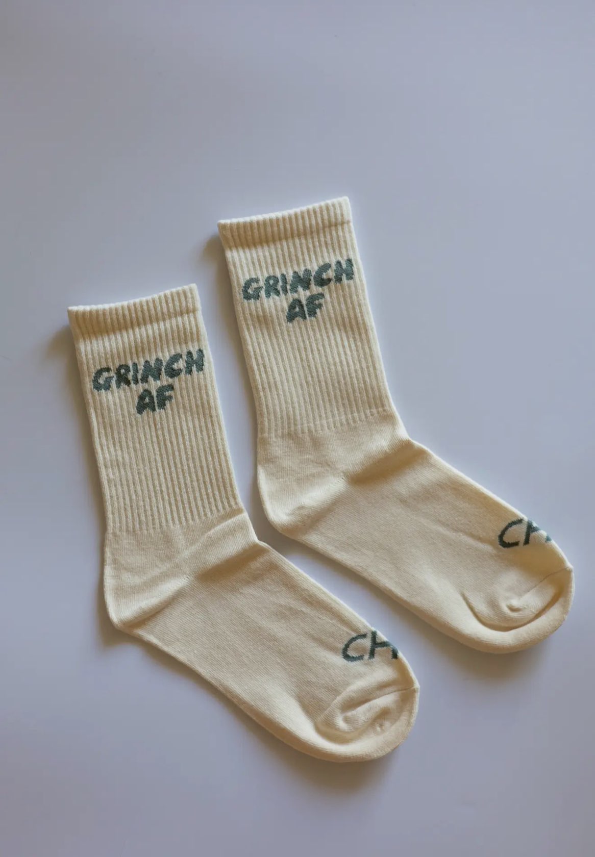 Stay cozy and sassy with our Grinch AF Crew Socks. These ultra-soft, cute socks featuring bold lettering that shows off your festive, yet funny side.