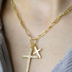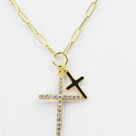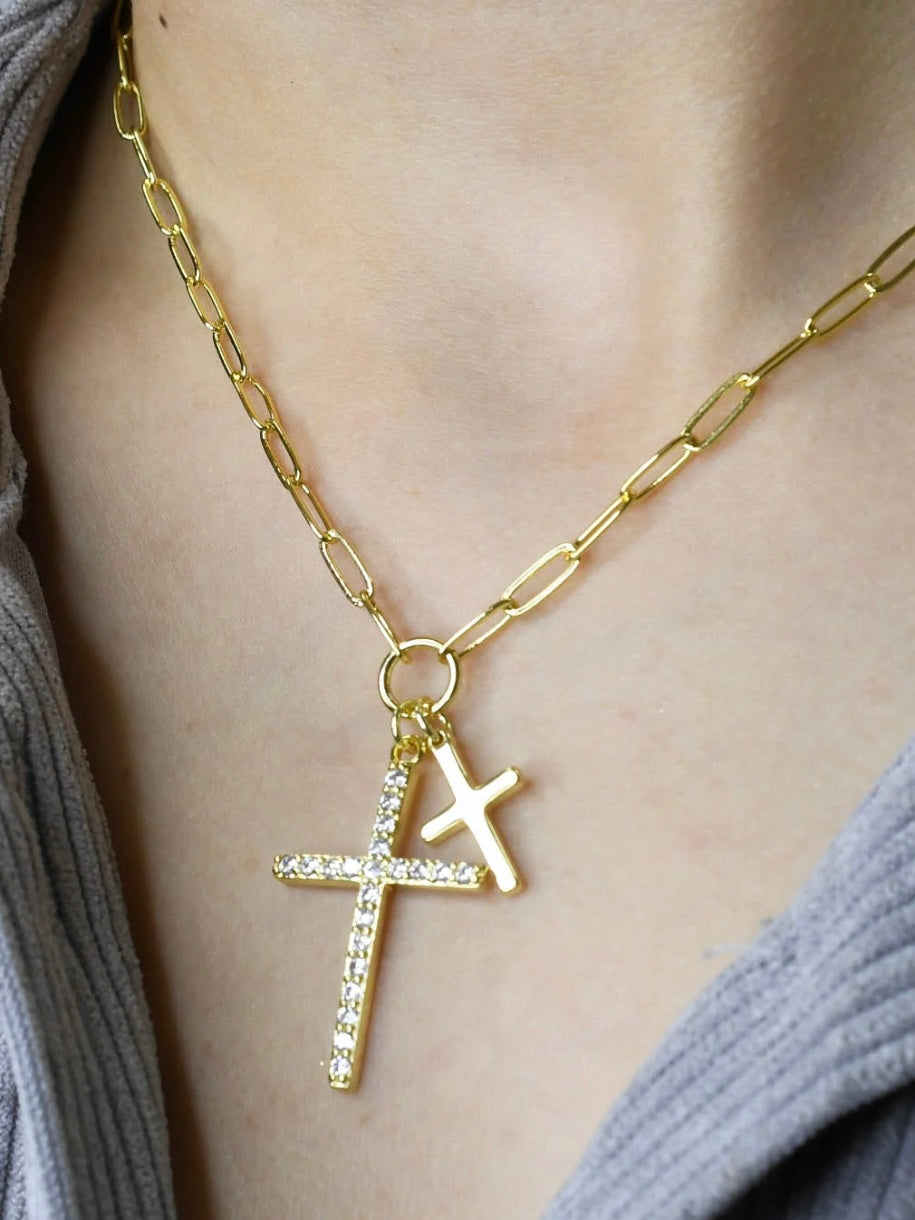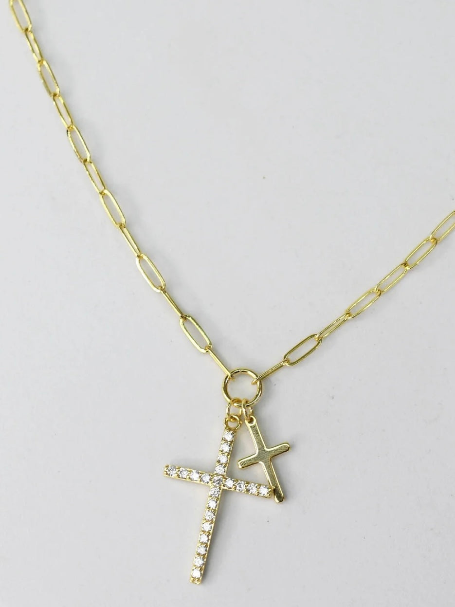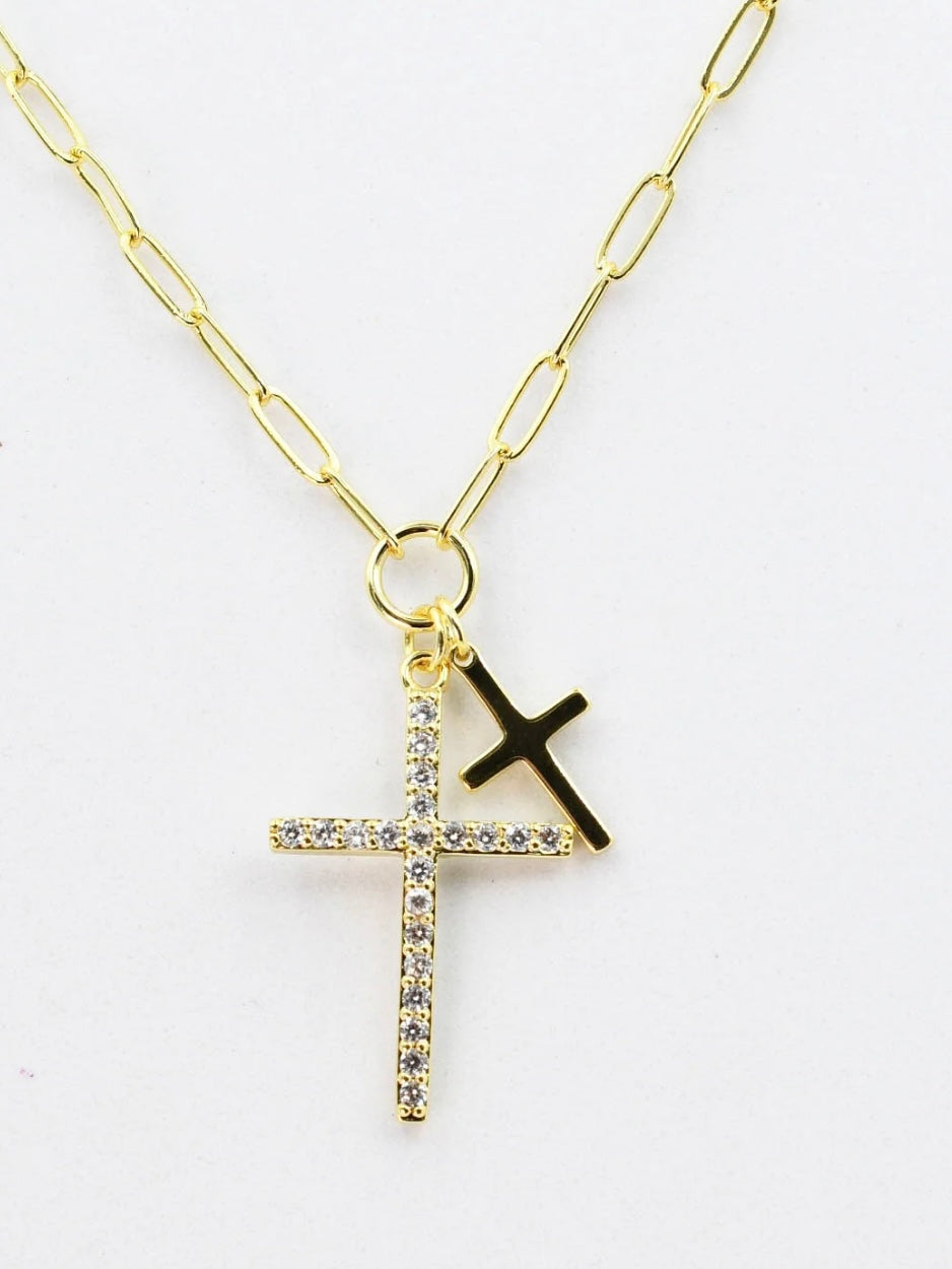 Enjoy this double cross necklace and remember you were designed to conquer great things!