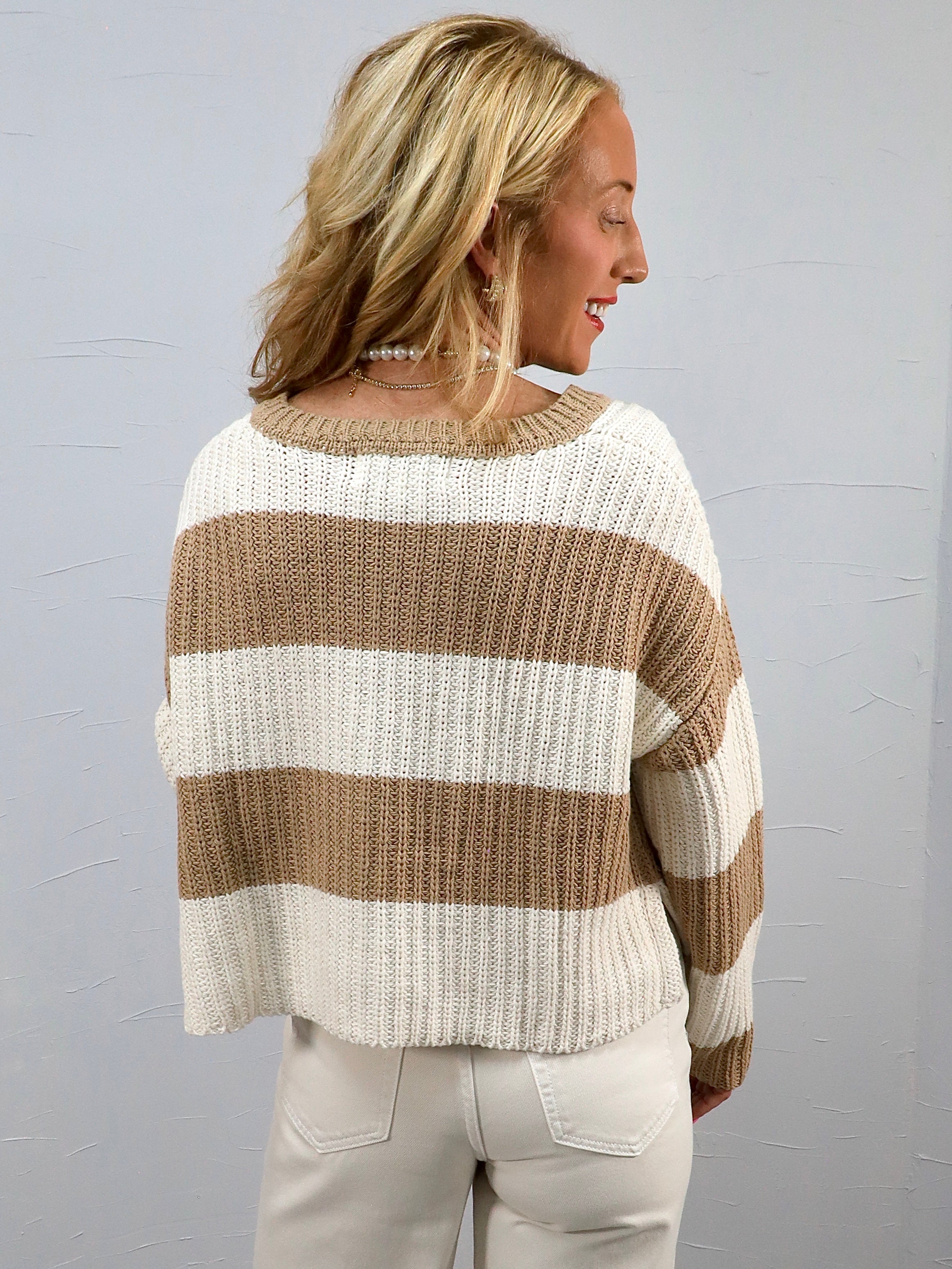 This sweater exudes "let's hit the beach" vibes, perfect for a barefoot stroll in the sand. When paired with our Say It's So Denim and mules, it's an effortless work day look that's also adorable enough for lunch with your sweetheart