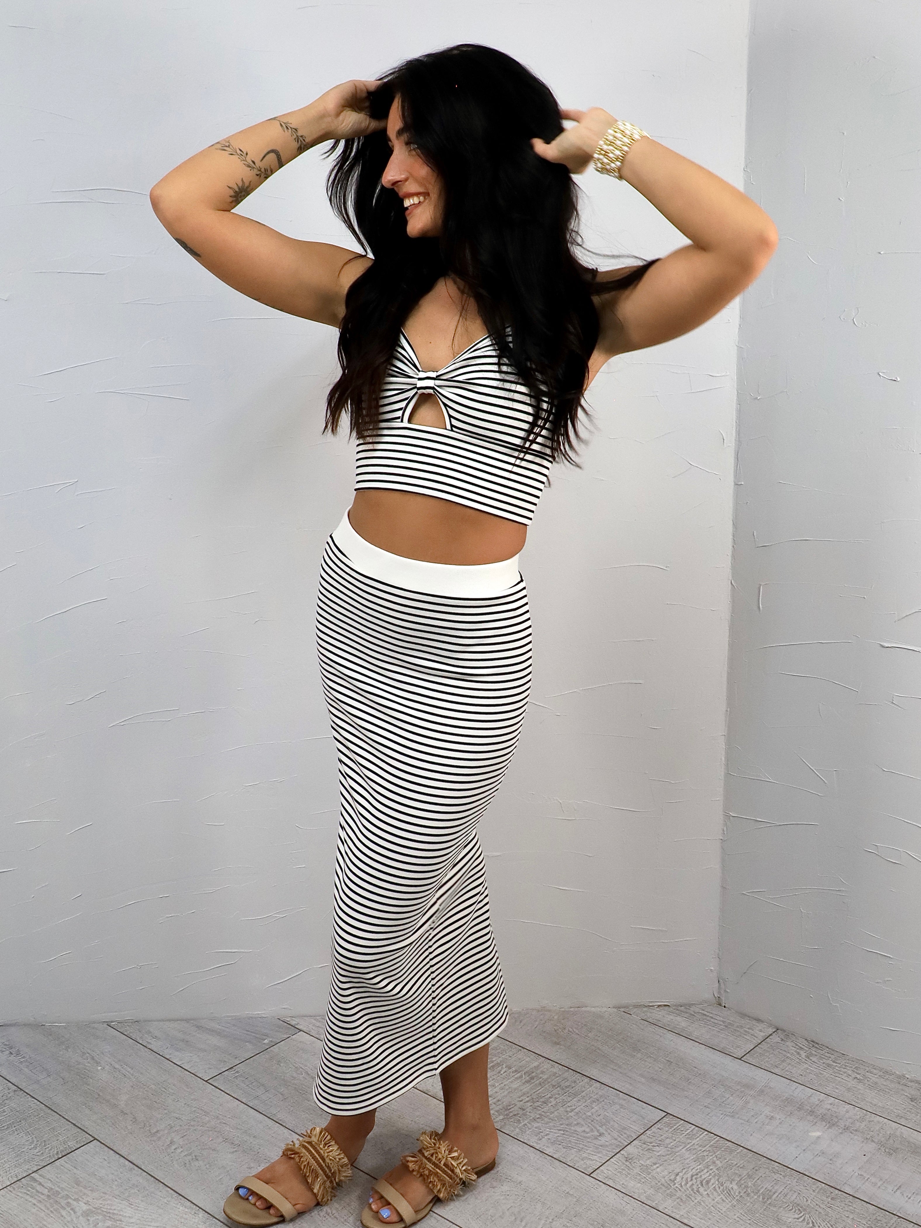 This Lucy's Striped Skirt is versatile for any beach, lake, or summer event. It can be effortlessly paired with its matching top for a coordinated look, or with a basic black tee and white tennis shoes for an on-the-go but comfy look!