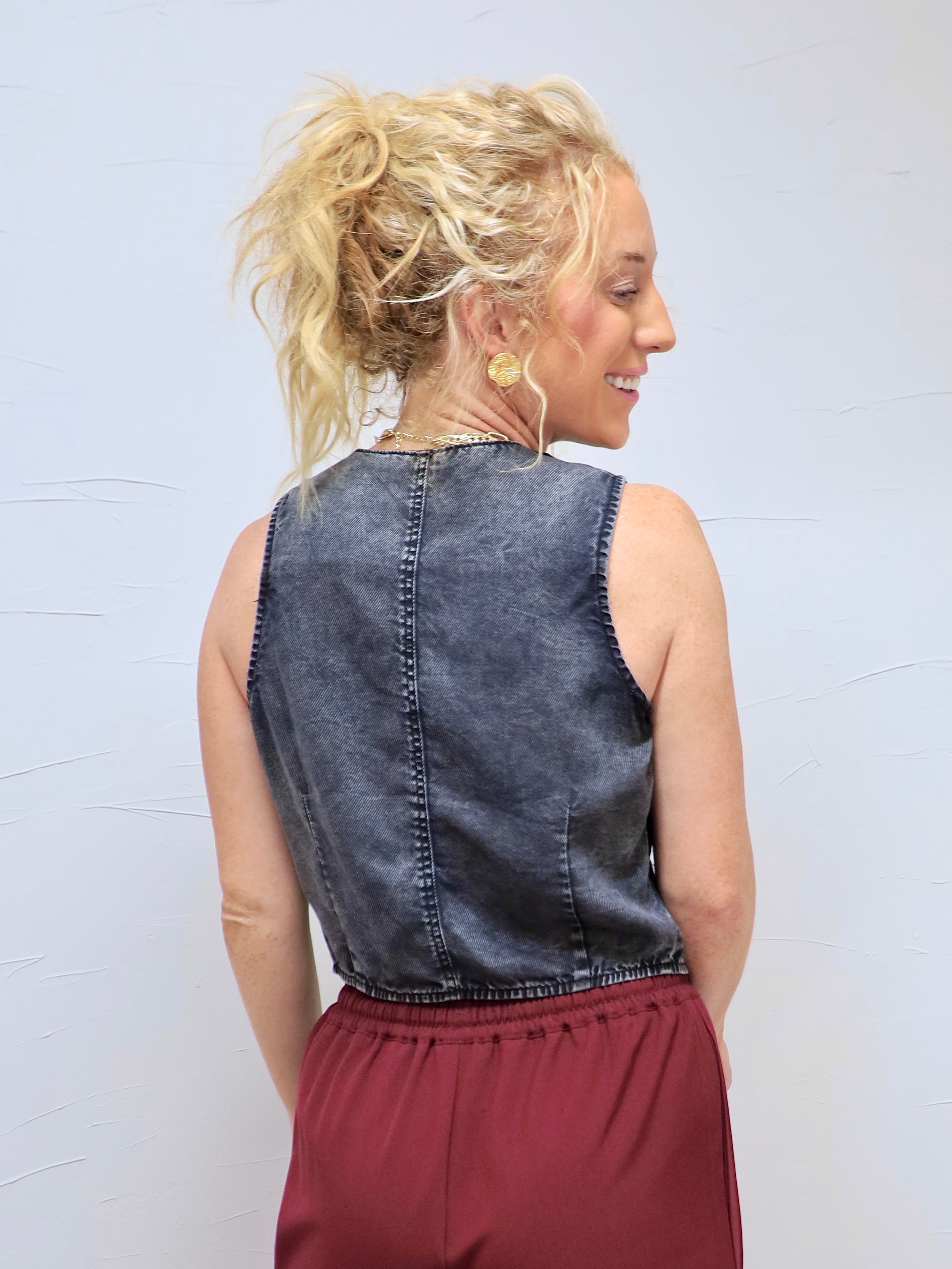 Rock this trendy vest as your go-to (and totally adorbs) spring staple. Match it with jeans or a flowy skirt for a chic and effortless transition from work to happy hour.