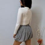 This top offers versatile layering options for a cozy style or can be worn alone for a playful touch. Additionally, it is available in three different colors for a variety of outfit choices.