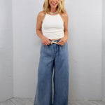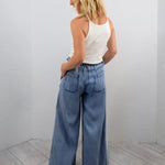 The Hiding Here In Denim Wide Leg Pant in camo print combines comfort and style with its breathable, and cozy fabric.