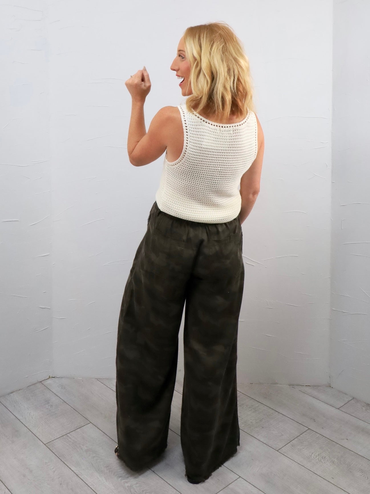 The Carter's Camo Wide Leg Pant in camo print combines comfort and style with its breathable, and cozy fabric.
