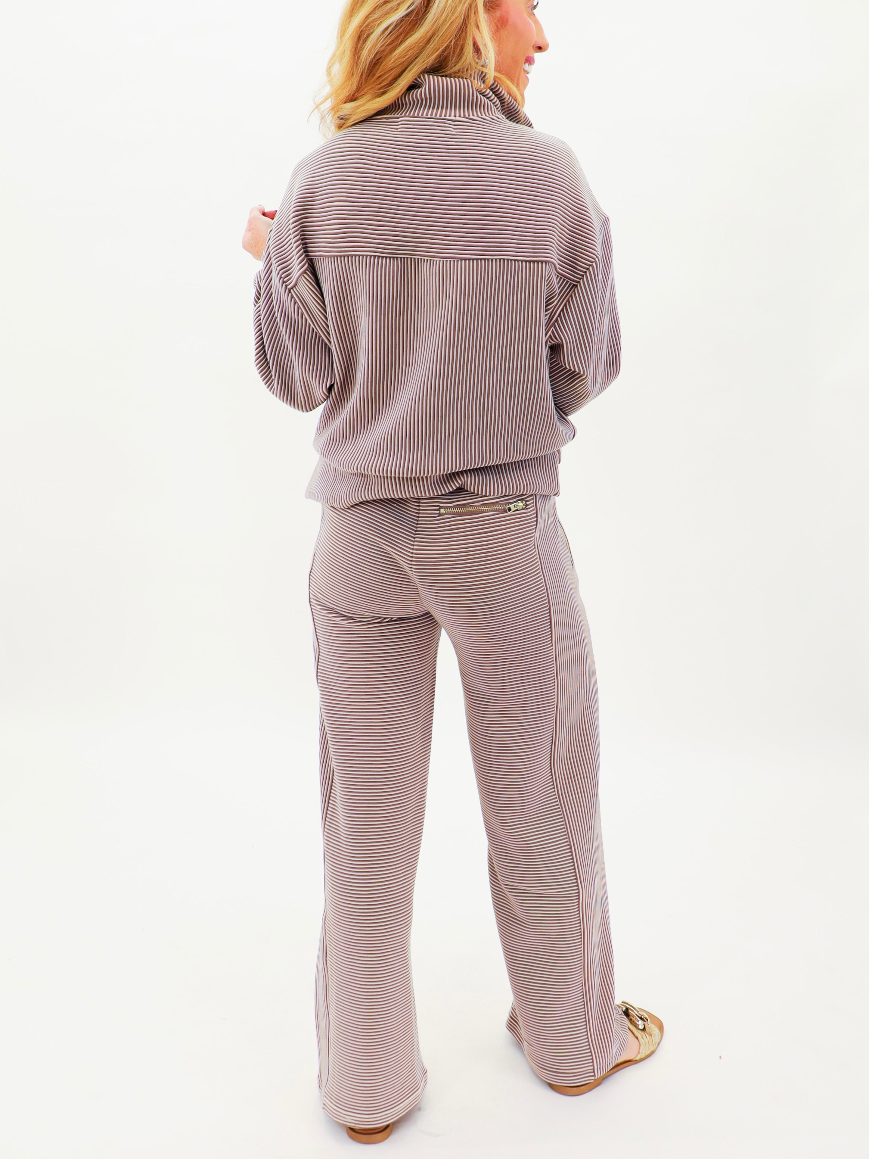 This fall's must-have lounge bottom (or should we say "set") is the ultimate in comfort and style. Its versatile color allows you to jazz it up with a white tee for a casual brunch or pair it with the matching pullover for a cozy movie date night!