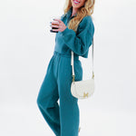 Introducing the ultimate fall loungewear essential: Throwback In Green Bottom! Whether you're doing school dropoffs or just enjoying a crisp morning, these bottoms are a must-have with their perfect blend of comfort and style.