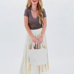 Ultra comfortable, soft and this top offers a double layer so no worry about it being sheer. Pair under overalls or your favorite jumpsuit and be ready for your next play date with your bestie and her kids!