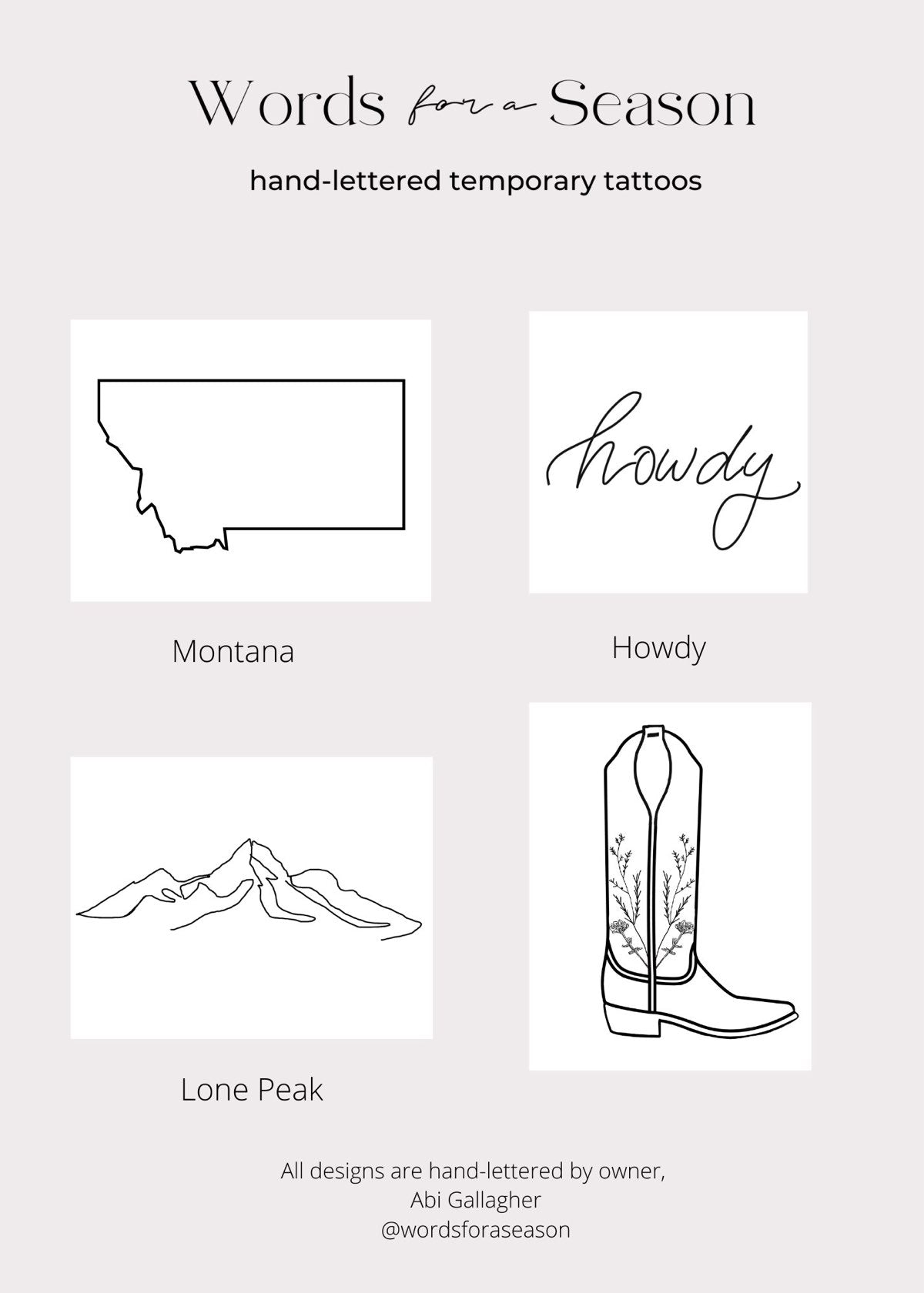 Montana Hand Drawn Temporary Tattoos