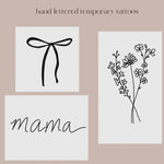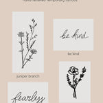 Enjoy our hand-drawn designs in a more permanent way, with our favorite temporary tattoos.